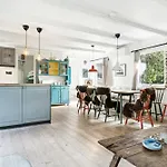 La Villa Warm Colors And Beautiful Outdoors In Thy incluye una cocina bien equipada, equipada con una nevera y menaje de cocina para preparar las comidas.